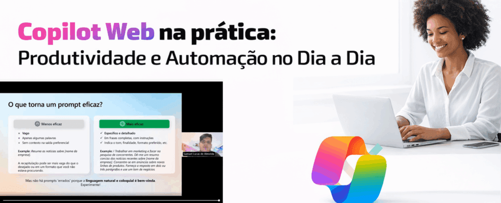Nos dias 24 e 26 de março, a Prodam, em parceria com a Lanlink, realizou o workshop “Copilot Web na Prática: Produtividade e Automação no Dia a Dia”, com transmissão online por meio da plataforma Teams. O evento foi direcionado a clientes e usuários do ambiente Microsoft Office 365 no Estado, além de colaboradores da empresa e convidados.